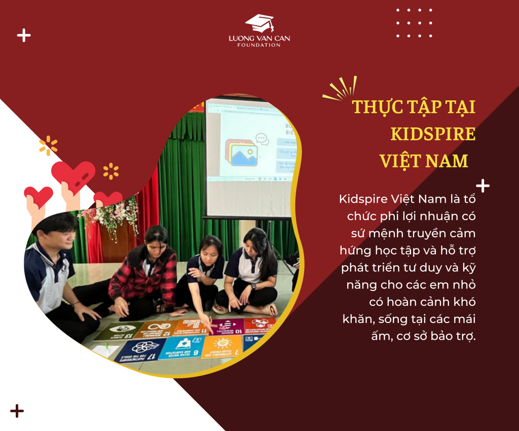 Kidspire Việt Nam là tổ chức phi lợi nhuận có sứ mệnh truyền cảm hứng học tập và trang bị cho các em nhỏ có hoàn cảnh khó khăn, sống tại các mái ấm, cơ sở bảo trợ về tư duy và kỹ năng cần thiết để chuẩn bị cho tương lai.