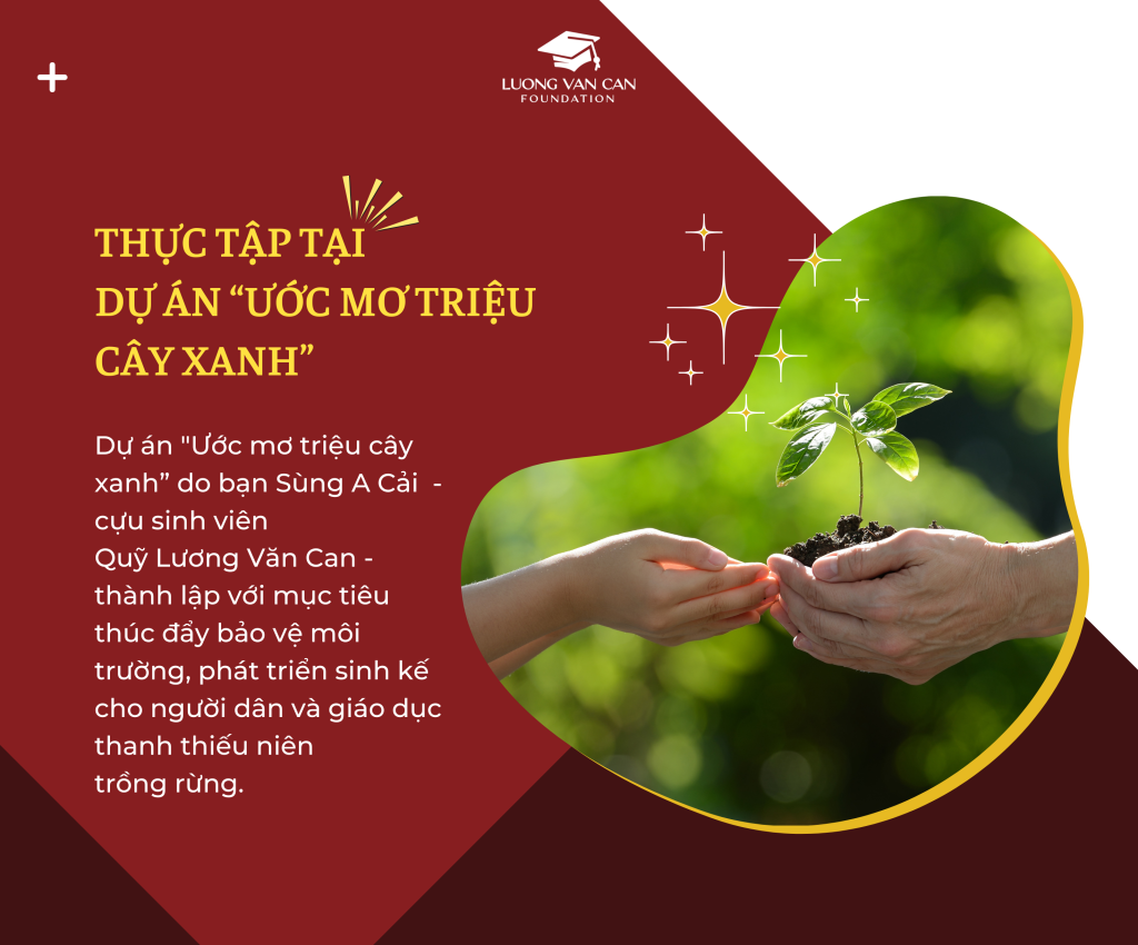 Dự án “Ước mơ triệu cây xanh- Green Dream” do anh Sùng A Cải – cựu sinh viên Quỹ Lương Văn Can – thành lập với mục tiêu thúc đẩy việc trồng cây xanh, bảo vệ môi trường, phát triển sinh kế cho người dân và giáo dục thanh thiếu niên.