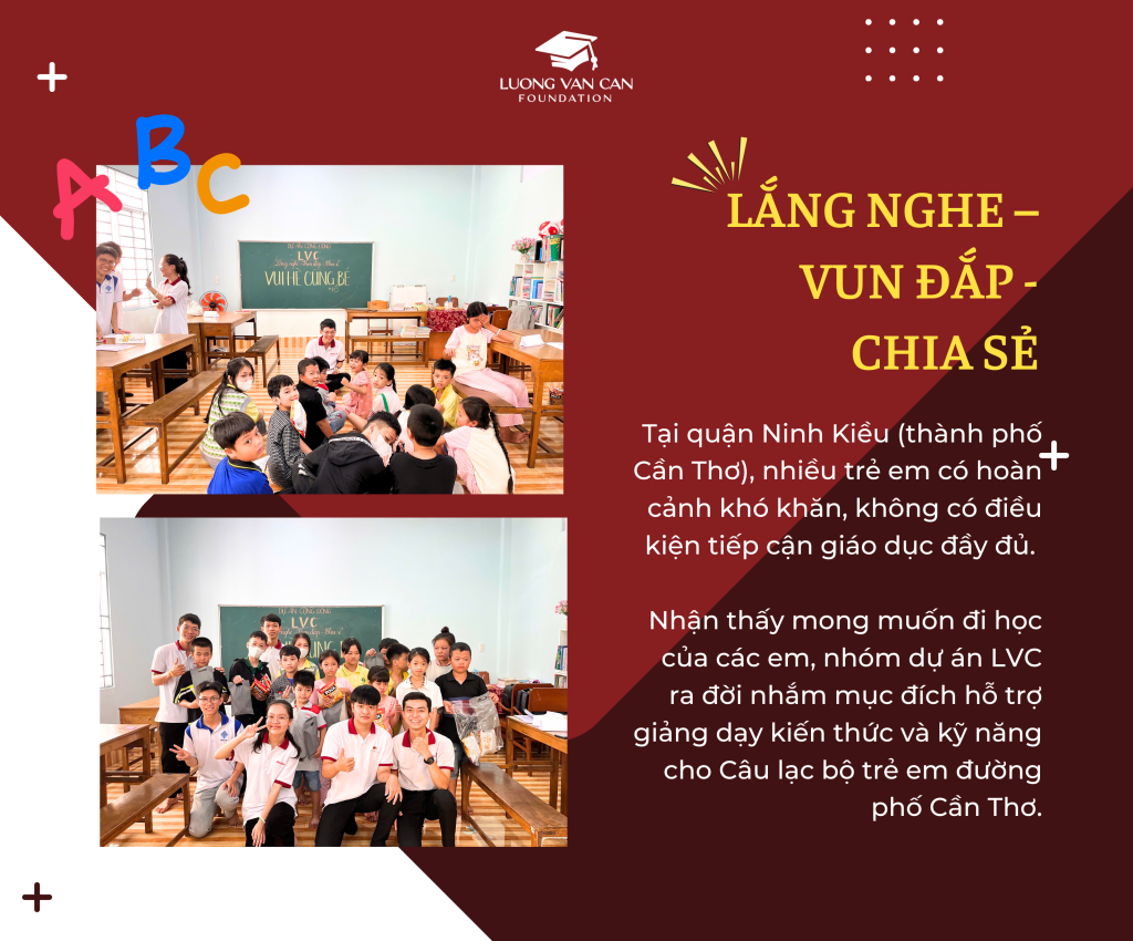 Nhận thấy mong muốn đi học của một số trẻ em có hoàn cảnh tương tự tại quận Ninh Kiều (Cần Thơ),  nhóm dự án LVC ra đời nhằm mục đích hỗ trợ giảng dạy kiến thức và kỹ năng cho các trẻ em tại Câu lạc bộ trẻ em đường phố Cần Thơ. Nhóm dự án hỗ trợ một cô giáo trong việc giảng dạy môn Toán, tiếng Việt và tiếng Anh (nếu có) cho các em. Bên cạnh những buổi học đọc chữ, viết số, dự án đã tổ chức thành công hoạt động cuối khóa “Vui hè cùng bé” với mục đích hướng dẫn cách vệ sinh cá nhân, hướng dẫn an toàn giao thông và an toàn thực phẩm.