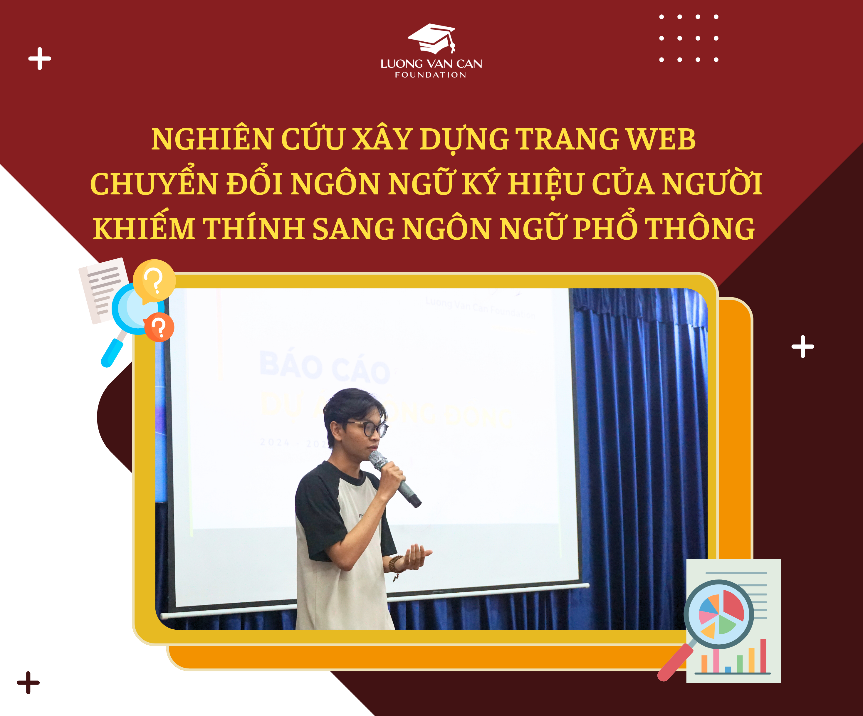 Dự án “Nghiên cứu xây dựng trang web chuyển đổi ngôn ngữ ký hiệu của người khiếm thính sang ngôn ngữ phổ thông” hướng đến việc phát triển một hệ thống ứng dụng trí tuệ nhân tạo (AI) và học sâu (Deep Learning) để nhận diện hình ảnh đầu vào là ngôn ngữ ký hiệu và chuyển đổi thành văn bản, hỗ trợ người khiếm thính giao tiếp với xã hội một cách dễ dàng hơn.