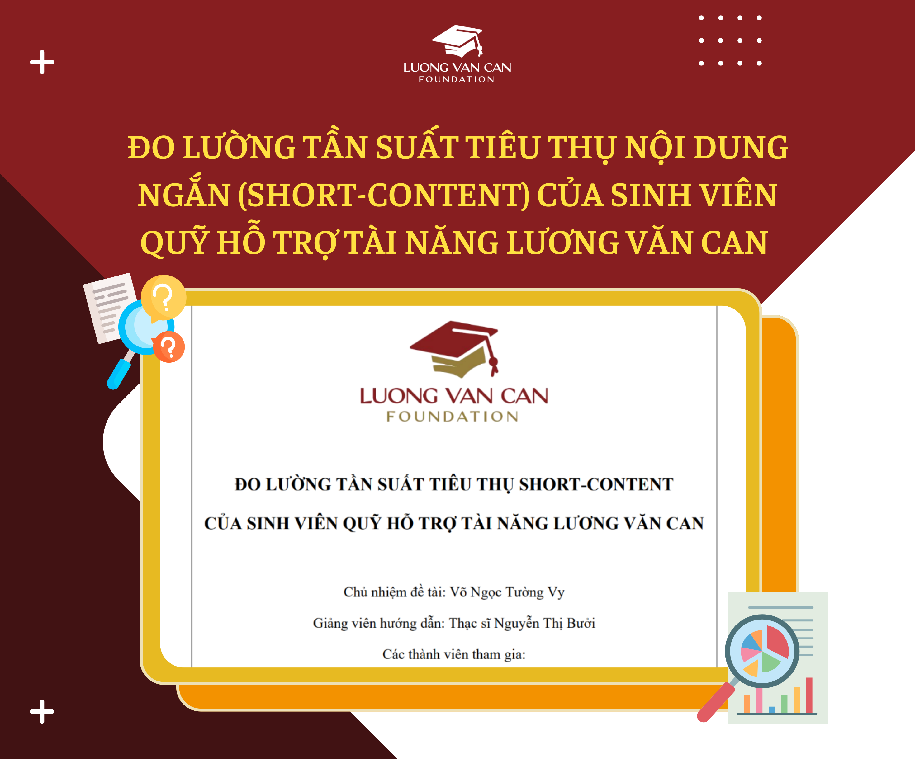 Dự án nghiên cứu đo lường tần suất tiêu thụ nội dung ngắn của sinh viên Quỹ Lương Văn Can với mục tiêu đo lường và đánh giá các yếu tố tác động đến hành vi tiêu thụ nội dung của 100 sinh viên thuộc Quỹ LVC.