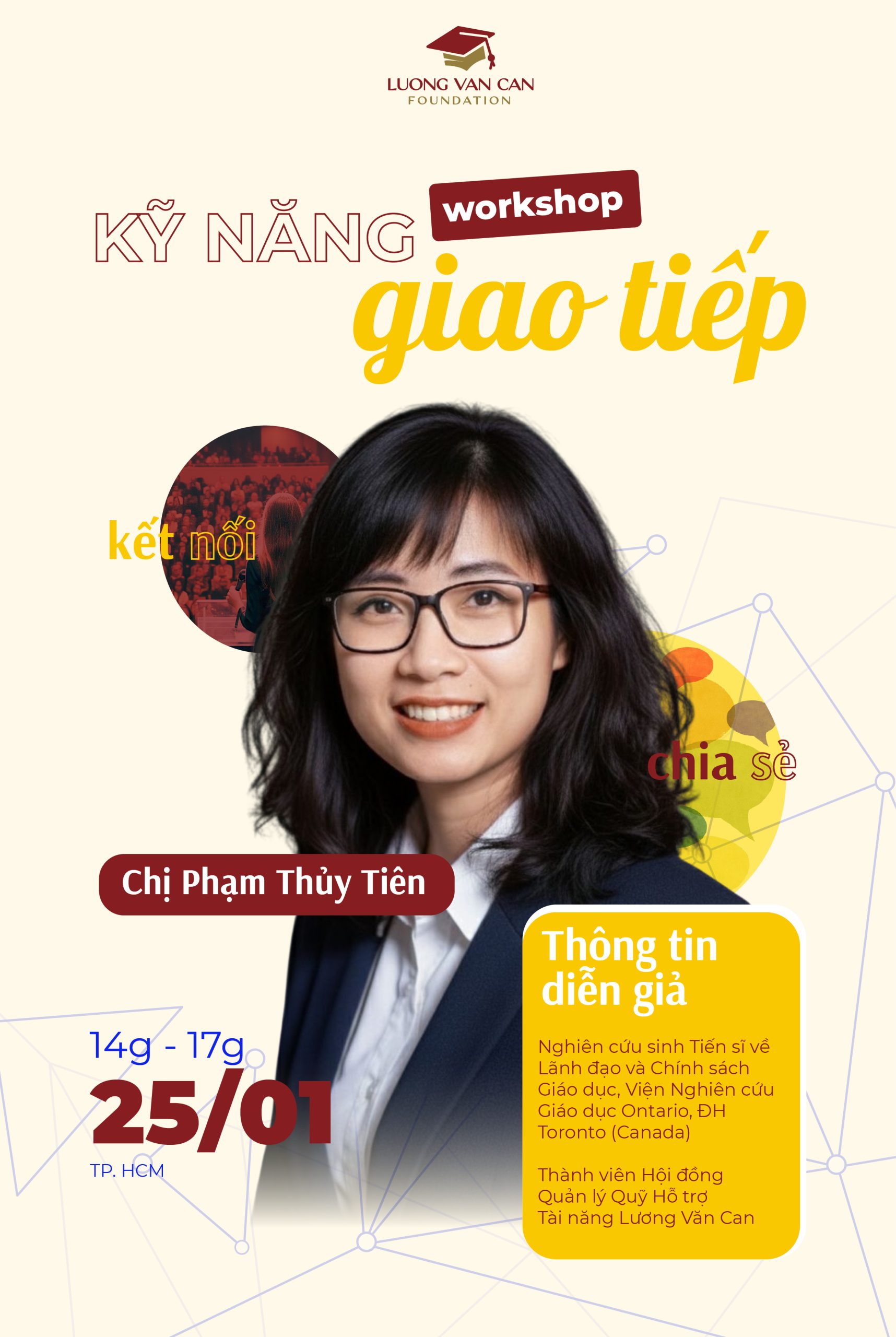 Quỹ Lương Văn Can xin gửi lời cảm ơn chân thành đến chị Phạm Thủy Tiên vì những chia sẻ tâm huyết và đầy giá trị. Hy vọng rằng sau chương trình này, các bạn sinh viên tự tin ứng dụng kỹ năng giao tiếp vào quá trình học tập cũng như công việc trong tương lai.