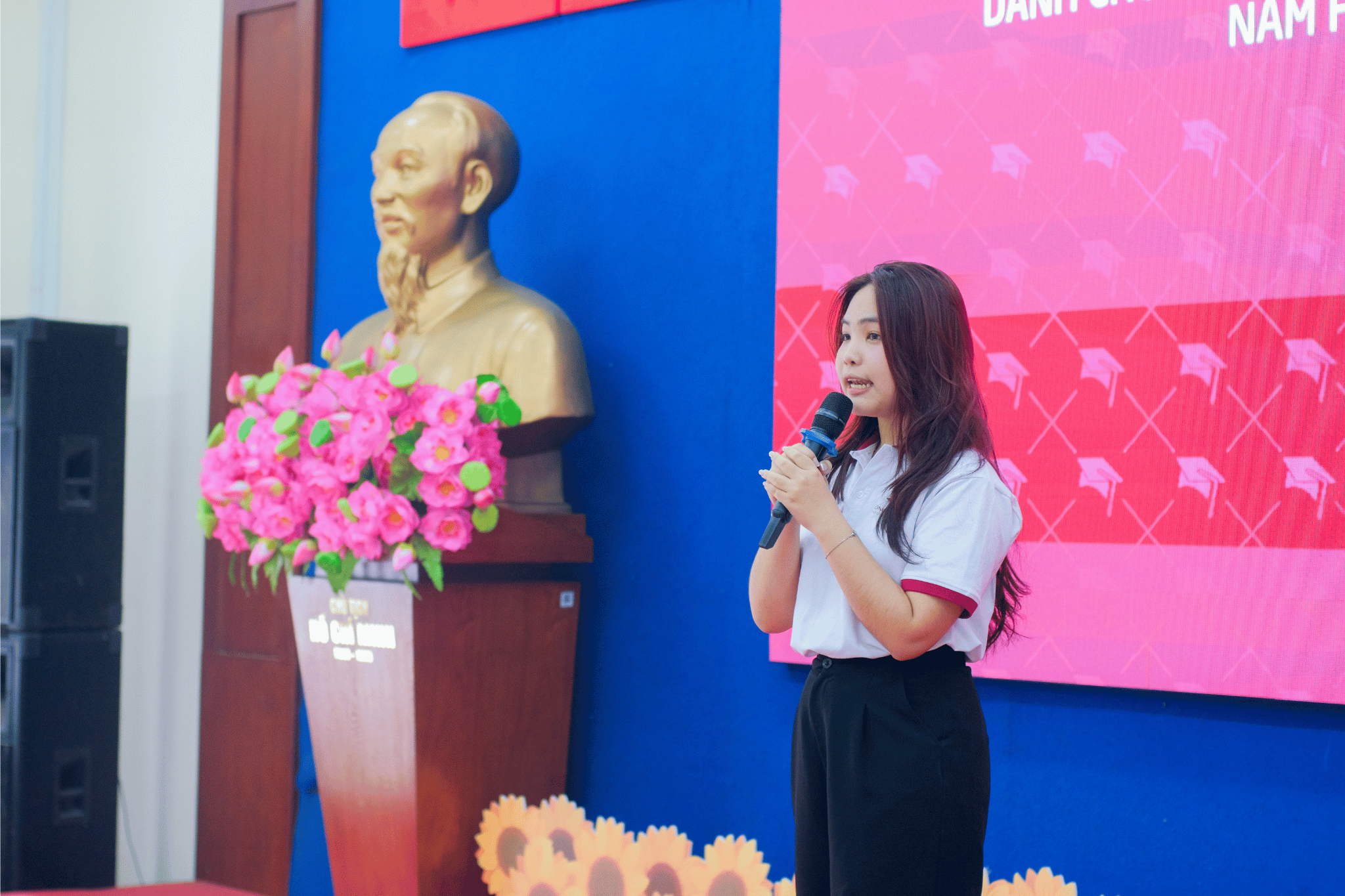 Tại buổi lễ, bạn Nguyễn Minh Như Thủy, đại diện sinh viên nhận học bổng Lương Văn Can gửi đến quý đơn vị tài trợ, quý khách mời có mặt tại Hội trường vì đã đồng hành cùng các thế hệ sinh viên Quỹ và bạn cũng chia sẻ câu chuyện về hành trình trưởng thành của mình.
